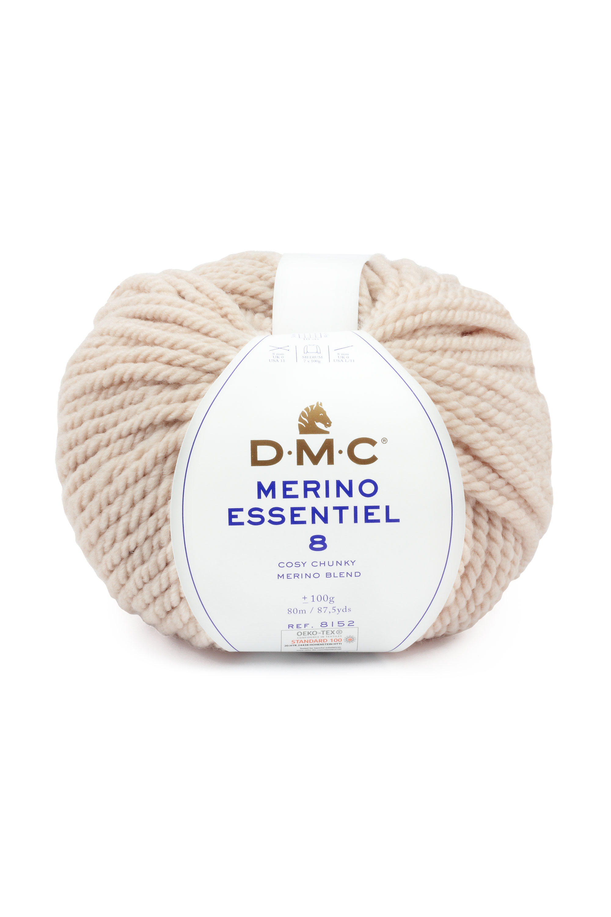 Merino Essentiel 8 ist das “Chunky”-Garn der Merino-Familie von DMC. Besonders geeignet für warme Kleidung, Pullover, Jacken, Mützen, Schals und alle Arten von Accessoires.