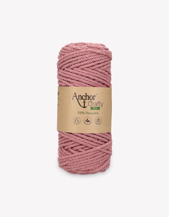 Anchor Crafty Fine es fácil de trabajar, ideal para principiantes y ofrece proyectos rápidos de realizar. Muy adecuado para proyectos de decoración del hogar Macramé , como colgadores de plantas, tapices de pared, caminos de mesa, manteles, etc. También se puede utilizar para Ganchillo y Tricot. Debido a su construcción retorcida, también se puede deshilachar maravillosamente para crear flecos texturizados